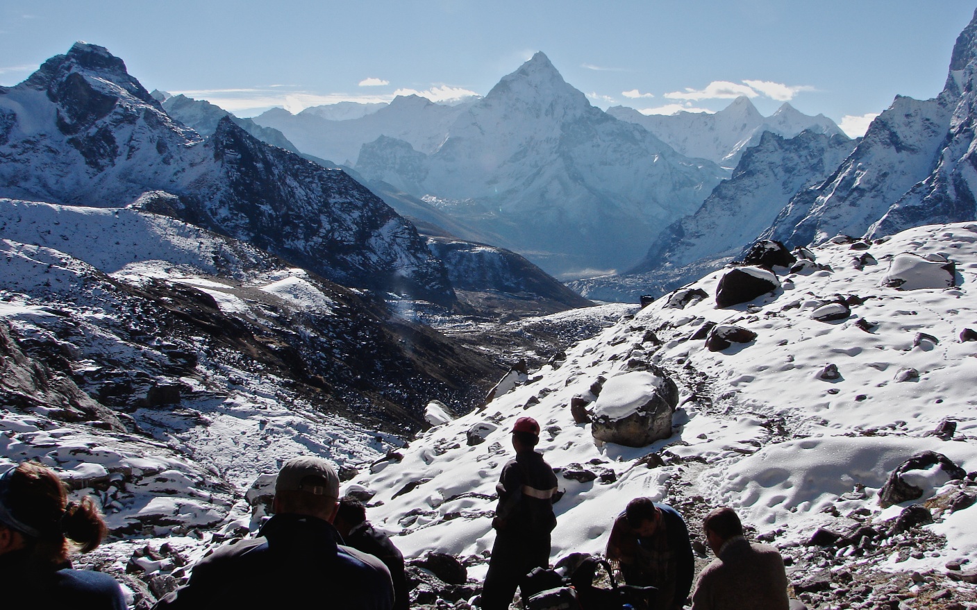 mid-morning break on the way to Cho La- facing Ama Dablam from NW