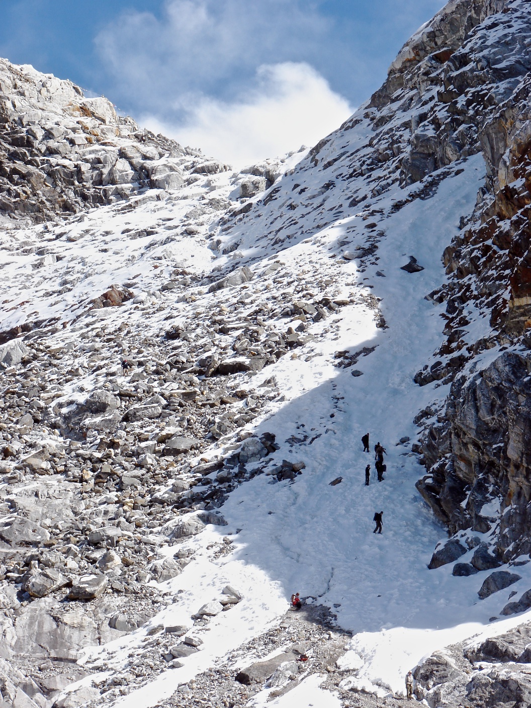 Re: my Cho La crossing. We were there in mid-November. The three days we spent waking from Lobuche to Gokyo co-incides with a severe case of stomach upset so I really wasn’t at my best! Your early October timeframe is really prime time. As you can tell from the pix, the descent down to the Gokyo side is somewhat steep. I do know that some trekkers bring lightweight crampons for that section although I did not find them necessary; the trekking poles were sufficient.