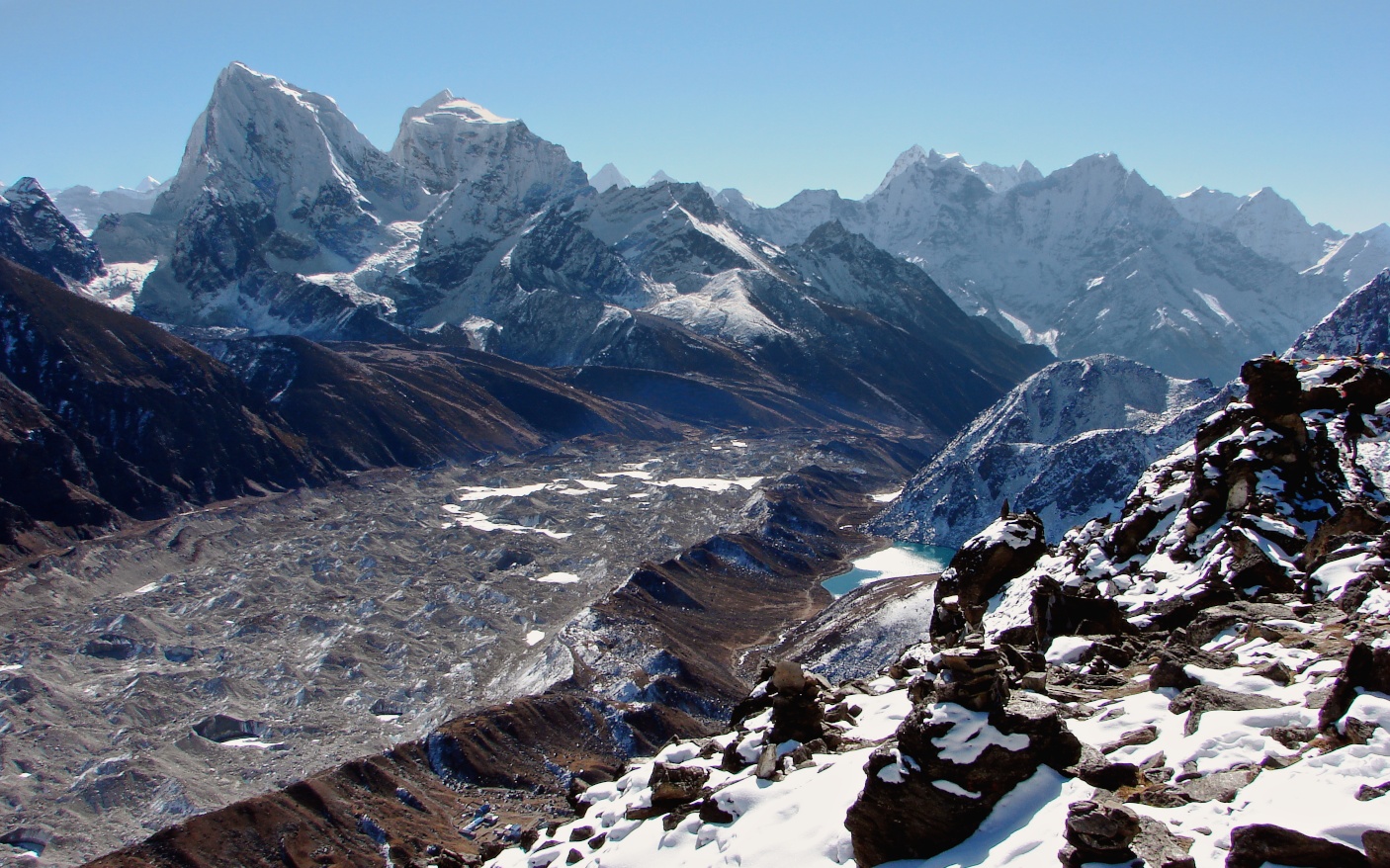 the view from Gokyo Ri- looking south to the second lake