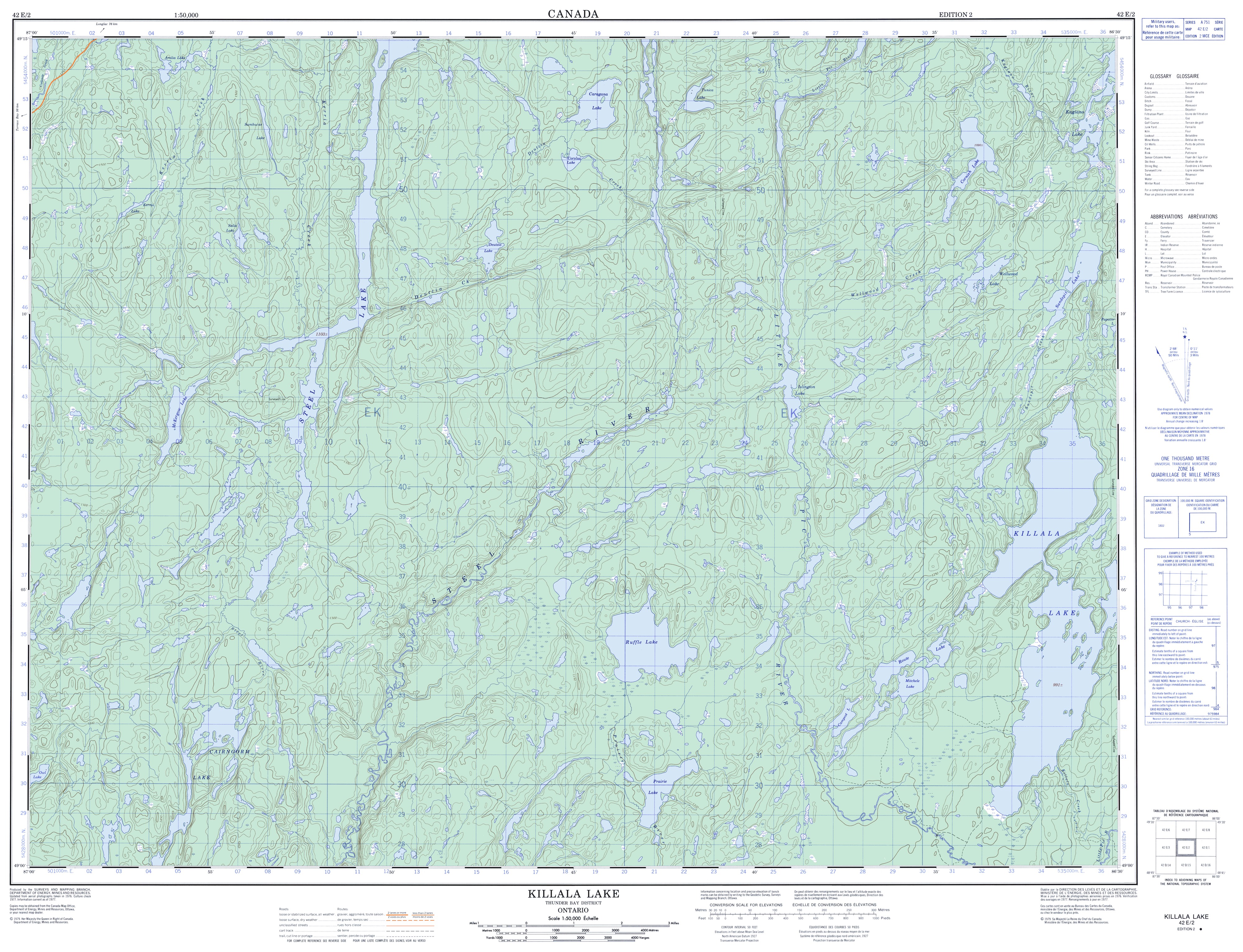 The topographical maps maintained by the Canadian Federal Government’s map department still provide the most accurate map information for canoe trippers. The one thng they lack is info on portages and campsites. They are available at no cost online if you want to print them – or the parts of them that are relevant to your trip. For the Steel River Loop, three 1:50,000 topos cover all your map needs.