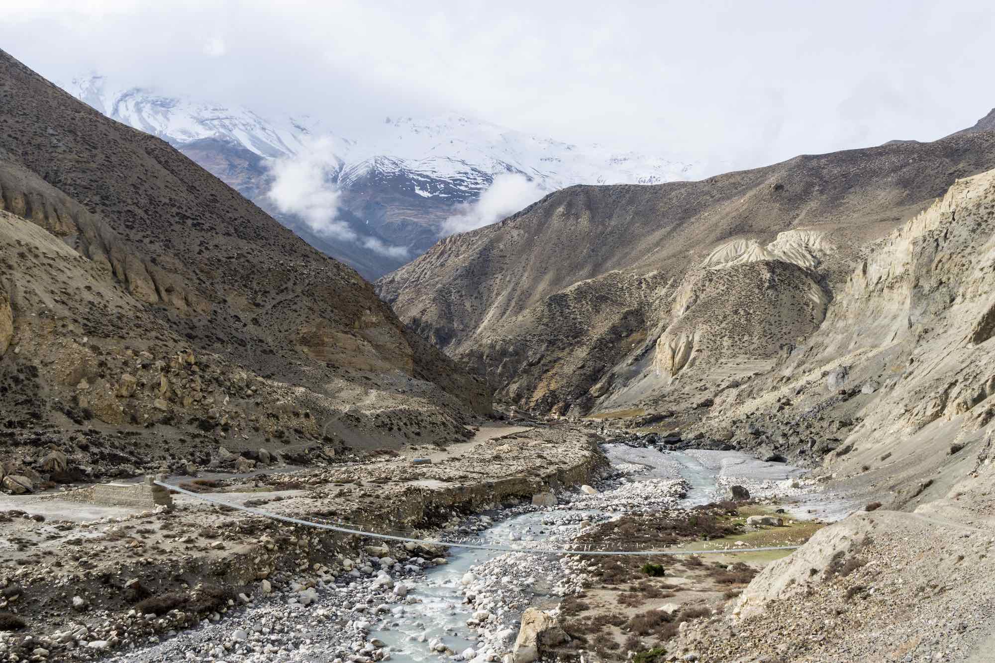 a shot of the bridge across the Phu Khola to the south of Phu